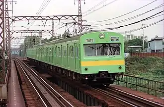 The 101 series (101系, 101-kei) was a DC electric multiple unit (EMU) commuter train type introduced in 1957 by Japanese National Railways (JNR), and formerly operated by East Japan Railway Company (JR East) and West Japan Railway Company (JR-West). The last remaining trains were withdrawn in November 2003.