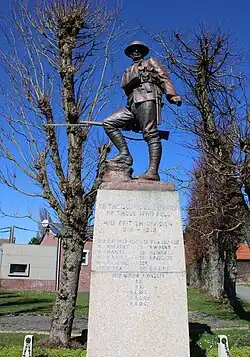 Lieutenant-Col Jarvis of 10th Queen's was also the chief organiser in raising money for the 41st Division memorial at Flers, which was unveiled in 1932. The bronze figure by Albert Toft is a copy of his Royal Fusiliers War Memorial in London. The pedestal lists all of the division's units, including 10th Queen's.[109][115][116]