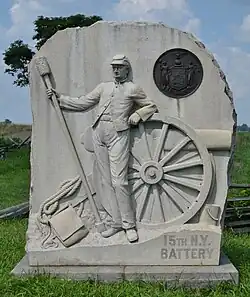 This article incorporates text from this source, which is in the public domain. - "15th New York Battery". The Civil War in the East. 2016. Retrieved December 17, 2020.