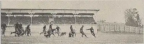 The starting lineup was: McCullough (left end), Bomar (left tackle), Morrow (left guard), Sharp (center), Kelly (right guard), Lawrence (right tackle), Neil (right end), Kuhn (quarterback), Wakefield (left halfback), Neely (right halfback), and Porter (fullback).[36]