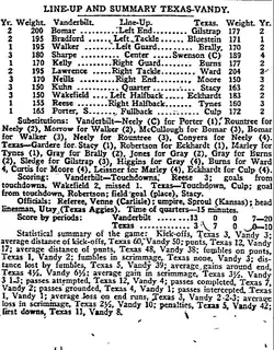 - ^ "Vandy Favored To Beat Texas By Large Score." Port Arthur Daily News 21 Oct. 1922: 3.