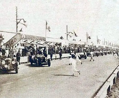 Race day was an extremely hot day.[18] This would cause issues with tar melting, and seeping through the new road-surface.[2] The pre-race ceremonies included Englishmen George Eyston and John Cobb showed off their Land speed record cars. Earl Howe then did a lap in the race-winning car from the previous year. Finally a minute's silence was held to commemorate André Boillot, a top French driver of the post-war period, who had been killed at a hill-climb event just a fortnight earlier.[1][2]