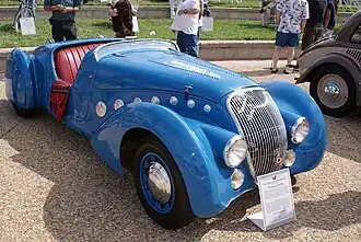 Peugeot had been a force in French motorsport ten years previously. When the new Peugeot 302 tourer was released, it was Émile Darl'mat, owner of the largest Parisian Peugeot dealership, which saw its potential as a sports roadster. He got permission from the company to build his own Darl'mat Spéciales. Fitted with an aerodynamic aluminium body, they would have the larger 70 bhp 2-litre engine of the Peugeot 402 sister-model. With works-team support, three cars were entered. Works driver Louis Rigal had driven for Peugeot the only time they had competed at le Mans, in 1926, and was paired with Daniel Porthault who had latterly driven a Lorraine-Dietrich of the same vintage. Peugeot's own competition manager Charles de Cortanze drove the second car with works driver Maurice Serre, while another works driver Jean Pujol raced with Maurice Contet.[19]