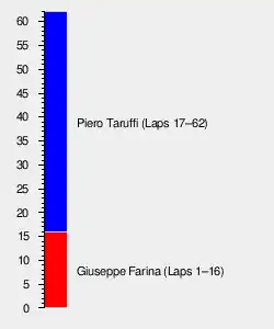 - Farina (33 laps) took over from Simon (18) after Farina retired from the race.