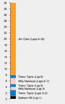 | 6 | 15 | Lotus-Climax | 30 | + 2 Laps | 15 | 1 | |