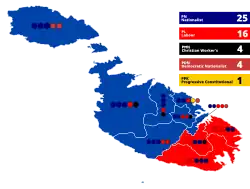 | Nationalist Party | 1926[b] | Giorgio Borg Olivier | Christian Democracy | Centre-right to Right-wing | 17 / 40 | ||||