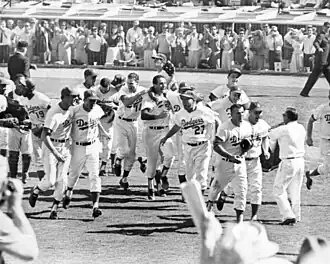 ![]() The Dodgers celebrate the sweep of the Yankees after the final pitch of the World Series | ||||||||||