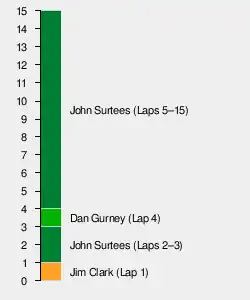 | 8 | 2 | Lotus-Climax | 14 | + 1 lap | 17 | ||