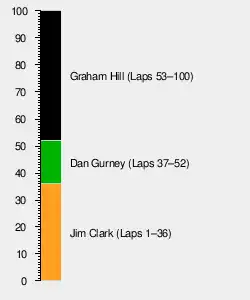 | 3 | 11 | Lotus-Climax | 97 | + 3 laps | 6 | 4 | |