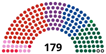 All 179 seats in the Folketing 90 seats needed for a majority |