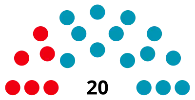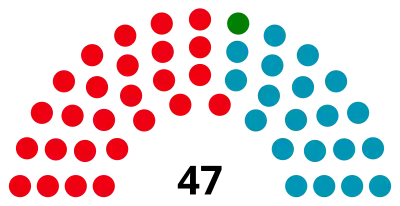 | Party | Primary votes | % | Swing | Seats won | Seats held | |