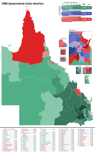 - ^ Australian Government and Politics Database. "Parliament of Queensland, Assembly election, 29 November 1980". Archived from the original on 12 March 2017. Retrieved 22 February 2009.