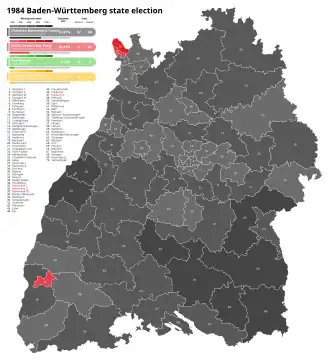 - ^ "Endgültige Ergebnisse der Wahl zum Landtag von Baden-Württemberg am 25. März 1984" (PDF) (in German). 1984-04-10. Retrieved 2025-05-18.