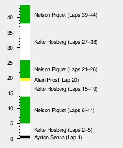 | 6 | 1 | McLaren-TAG | 43 | Out of fuel | 2 | 1 | |