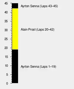 Prost and Senna were on the limit the entire race and Prost hounded Senna for 16 laps, until he went in for his pit stop for tyres, which was a slow one of 18 seconds (a good pit time during that era was around 6 to 8 seconds) which put Mansell in second place and gave Senna a stronger lead. The next lap, Mansell came into the pits for his tyre change and his pit stop was faster than Prost's but still a poor stop of 11 seconds, which dropped him down back to fourth behind, Senna, Pirro and Prost. Senna decided to take advantage of his lead and came into the pits for his tyre change, his stop was even worse than Prost's, lasting 23 seconds. All 4 wheels were replaced in good time, but team boss Ron Dennis was forced to hold his driver when the left rear wheel changer didn't think he had located the wheel properly and they had to take it back off to get it set right. This dropped the World Champion down to second behind Prost while Pirro, now also in the new Benetton and the only team car left in the race after Nannini's new Ford V8 had succumbed to an electrical misfire on lap 7, had come into the pits for a tyre change and dropped back to fourth behind Mansell.