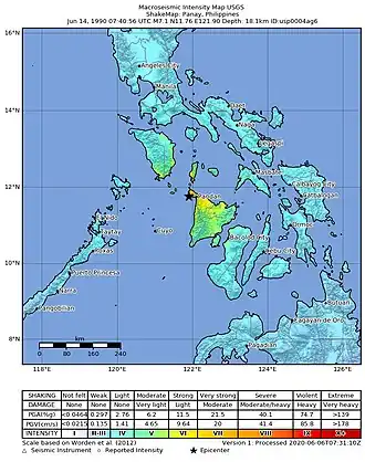This article incorporates text from this source, which is in the public domain. "1990 June 14 Ms7.1 Panay Earthquake". Philippine Institute of Volcanology and Seismology. 14 June 1990. - ^ a b c "M 7.1 – 0 km ESE of Union, Philippines". United States Geological Survey. Retrieved August 28, 2021.