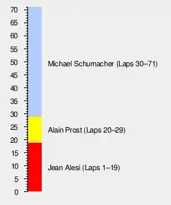 | 1 | 5 | Benetton-Ford | 71 | 1:32:46.309 | 6 | 10 | |