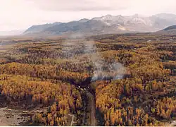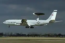 The Alaska Boeing E-3 Sentry accident was the September 22, 1995 crash of a United States Air Force Boeing E-3 Sentry airborne early warning aircraft with the loss of all 24 crewmembers on board.[2] The aircraft, serial number 77-0354 with callsign Yukla 27, hit birds on departure from Elmendorf Air Force Base in Alaska, United States. With the loss of thrust from both of the left engines, the aircraft crashed into a wooded area less than a mile from the end of the runway.[1]
