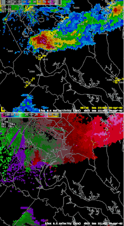 Top: Reflectivity radar recap of the supercell that spawned the tornado.