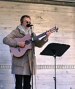 Concerned with the state of the Icelandic economy, Hörður Torfason staged a one-man protest in October 2008. Hörður stood "out on Austurvöllur with an open microphone and invited people to speak".[10] The following Saturday a more organised demonstration occurred, and participants established the Raddir fólksins. The group decided to stage a rally every Saturday until the government stepped down. Hörður led the protest from a stage near the front.[11][12] Speakers, voices of the people (Icelandic: Raddir fólksins) were: Andri Snær Magnason, author; Arndís Björnsdóttir, teacher; Björn Þorsteinsson, philosopher; Dagný Dimmblá, student; Einar Már Guðmundsson, writer; Gerður Kristný, writer; Gerður Pálmadóttir, business woman; Guðmundur Gunnarsson, president of Writers' Union of Iceland (RSÍ); Halldóra Guðrún Ísleifsdóttir, teacher, artist, and graphic designer; Hörður Torfason, musician and trubator; Illugi Jökulsson, author; Jón Hreiðar Erlendsson; Katrín Oddsdóttir, lawyer; Kristín Helga Gunnarsdóttir, author; Kristín Tómasdóttir, health consultant; Lárus Páll Birgisson, orderly; Lilja Mósesdóttir, economist; Pétur Tyrfingsson, psychologist; Ragnheiður Gestsdóttir, author; Ragnhildur Sigurðardóttir, historian; Sigurbjörg Árnadóttir, journalist; Sindri Viðarsson, historian; Stefán Jónsson, teacher and theatre director; Viðar Þorsteinsson, philosopher; Þorvaldur Gylfason, economist; Þráinn Bertelsson, author. Formal address by Ernesto Ordiss, and Óskar Ástþórsson, kindergarten teacher. Impromptu speakers were Birgir Þórarinsson, Sturla Jónsson, and Kolfinna Baldvinsdóttir.[13]