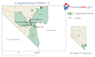 This conservative-leaning[3] district that constitutes all of Nevada outside of Clark County and even some parts of Clark County has been represented by Republican Congressman Dean Heller since he was first elected in 2006. Though Heller faced a close election in 2006 and a somewhat competitive election in 2008, two-time Democratic opponent Jill Derby declined to run for a third time. Instead, Nancy Price, a former regent of the Nevada System of Higher Education, emerged as the Democratic nominee. Criticizing Price's "glowing" citations of Bernie Sanders, an openly socialist United States Senator and praising Congressman Heller's "core principles," the Las Vegas Review-Journal endorsed Heller in his bid for a third term.[4] On election day, Heller won by a large margin, as expected.
