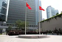 Three days of mourning were declared by Chief Executive Leung Chun-ying, starting on 4 October, during which the flag of Hong Kong was flown at half-mast on all government buildings. On 4 October, Leung, along with other government officials, observed three minutes of silence outside the Central Government Offices at 12:00. Schools and other public offices also observed a moment of silence.[27][9] Condolence points were set up in each of the 18 districts during the mourning period.[28]