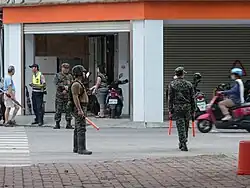 Firefighters from Kaohsiung City, Chiayi City, Pingtung County, Tainan City and Taitung County rushed to the scene to extinguish the fires and help the rescue efforts. Some of the firefighters also sprayed water on the roads in the hope to reduce the ground temperature.[10] During the incident, four firefighters died, with two of them going missing; the explosions also injured 22 other emergency workers.[11][12] The Taiwanese army was also dispatched and arrived at the site within two hours after the initial explosion.[13]