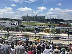 Dover International Speedway is an oval race track in Dover, Delaware, United States that has held at least two NASCAR races since it opened in 1969. In addition to NASCAR, the track also hosted USAC and the NTT IndyCar Series. The track features one layout, a 1 mile (1.6 km) concrete oval, with 24° banking in the turns and 9° banking on the straights. The speedway is owned and operated by Dover Motorsports.