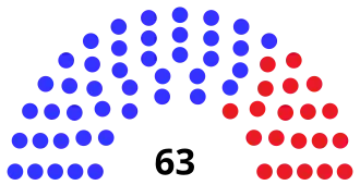 By 2018, the State Senate was the last Republican-controlled body in the New York government.[6] In the 2018 elections, Democrats gained eight Senate seats, taking control of the chamber from the Republicans.[7] Previously, Republicans had controlled the Senate for all but three years since World War II,[8] and the Democrats' largest share of New York State Senate seats since 1912.[4] At the beginning of the 2019-2020 legislative session, the Senate Democratic Conference held 39 of the chamber's 63 seats.[9] In July 2019, Simcha Felder — who had caucused with the Republicans during their time in the majority — was accepted into the Senate Democratic Conference, giving the Conference a total of 40 members.[10]