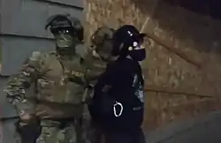 Bottom: Federal agents in body armor and camouflage detain a masked person before placing him in an unmarked van in Portland, Oregon, July 2020.[1][2]