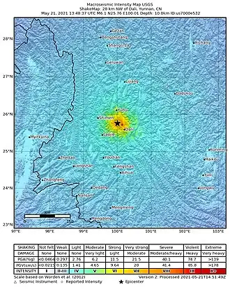 - ^ a b "M 6.1 - 28 km NW of Dali, China". United States Geological Survey. 21 May 2021. Retrieved 21 May 2021.