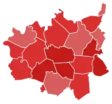The 3rd district encompasses nearly all of Louisville Metro, which, since the merger of 2003, is consolidated with Jefferson County, though other incorporated cities, such as Shively and St. Matthews, exist within the county. Incumbent representative John Yarmuth announced he would not be running for re-election in 2022. He was succeeded in 2022 by State Senator Morgan McGarvey, who won 62.0% of the vote in the general election.[22]