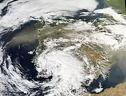 Disastrous floods have been reported throughout the history of Valencia, from the 14th century up to the contemporary period.[5] The 1957 Valencia flood was caused by a three-day cold drop (Spanish: gota fría) (which usually leads to heavy autumn rains in Spain and France); it overflowed the banks of the Túria river and devastated the city of Valencia.[6][7]