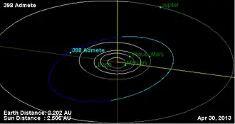 - ^ a b c d e f g h "JPL Small-Body Database Browser: 398 Admete (1894 BN)" (2015-12-11 last obs.). Jet Propulsion Laboratory. Retrieved 10 May 2016.