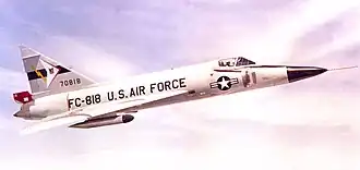The second wing provided interceptor combat crew training for McDonnell F-101 Voodoo and Convair F-106 Delta Dart aircrews, interceptor aircraft weapons training, and conducted operational testing and evaluation of crewed interceptors, fire-control systems, and armament.[4] The wing was ADC's only unit conducting live firing and operating target control systems after the 4750th Air Defense Wing at Vincent Air Force Base, Arizona was discontinued.[4]