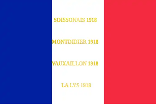 Contrary to the rules, a ministerial decision in 1951 authorized the regiment to bear wearing the regimental colors, the palms acquired by the regiments battalions (5 palms by the 3rd battalion and 3 palms by the 7th battalion), as well as 3 Fourragere. Croix de Guerre 1914-18 with 8 palms and 3 stars.