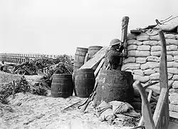 An observer from the 2/4th East Lancashire Regiment at the extreme left of the British front line in September 1917, manning a position on the Belgian coast at Nieuwpoort.