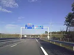 The A65 autoroute is a motorway in south west France. Construction started in 2008 and it was officially opened on 14 December 2010.[1] It connects Langon (Gironde) to Pau (Pyrénées-Atlantiques), with a toll payable of €19.70 for the complete journey by car.