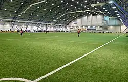 For the 2020–21 off-season, the construction for the club's own air-supported indoor arena, sponsor name Garam Masala Areena, was completed.[20] During the winter months, the club trains at the Garam Masala Areena, and plays the official Finnish League Cup matches at the nearby-located Heinäpää football arena, an indoor arena owned by the city of Oulu, with the capacity of 630.