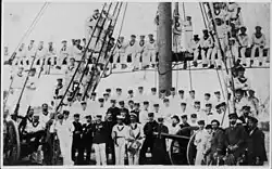 Its first commander was Coronel de Marina (Capitán de Navío) Daniel de Solier, who arrived in Trieste on 26 February 1884 with the new ship’s crew (including 30 cadets); the ship was still being completed. On 11 May 1884 the ship was handed over to the Argentine Navy and departed from Trieste, arriving in Buenos Aires, Argentina, on 18 October 1884.[1]