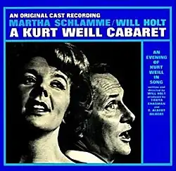A Kurt Weill Cabaret was a Broadway and off-Broadway production featuring the music of Kurt Weill. A precursor, The World of Kurt Weill in Song, opened off-Broadway at One Sheridan Square in the West Village on June 6, 1963,[1] starring Will Holt and Martha Schlamme.[2] In 1979, it was revised as A Kurt Weill Cabaret and opened at the Bijou Theater on Broadway, with Alvin Epstein and Martha Schlamme and ran for 72 performances. The Harold Clurman Theatre (now Theatre Five in the Theatre Row Building) showed it in 1984.[3]