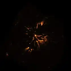 In rare cases, the helium shell of the star reaches critical mass and fuses into carbon and oxygen in the region surrounding the star’s core and heats the outer envelope of the star so much that it temporarily becomes a red giant again, in what is known as a very late thermal pulse.[7] The sequence of events – envelope ejection followed by a fast stellar wind – is repeated on a much faster scale than before, and a small-scale planetary nebula is created inside the original one. In a sense, the planetary nebula is reborn.[6] This new activity created the knots in the inner part of the nebula.[1] The expansion rate of the knots when observed by Hubble Space Telescope across a time span of 20 years indicates they have an age of 610 to 950 years.[7]