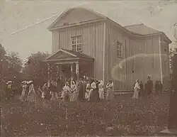 The Germans established a ghetto on 14 August 1941 and about 150 people or 25 families were placed in two single-story buildings of a local school.[3] On 5 March 1942, news of the mass murder of Jews in Smalyany reached the ghetto, and at midnight, 60 Jews escaped from the school according to survivors' accounts.[3] The number of escapees may be an exaggeration, but it is known that a number of young Jews from the village later fought for partisan units such as the Zaslonov brigade.[3] The ghetto was liquated on 4 June and approximately 100 Jews were shot.[3]