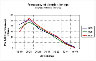 Between 1999 and 2003, 1,740 applications for abortions between the 12th and 16th week were considered by commissions in Norway. Of these, 1647, or 95.2% were approved.[6]