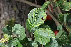 A fungus, Taphrina sadebeckii, can look similar on the upper surface.[4]