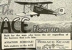The Ace Aircraft Manufacturing Company was established in Wichita, Kansas in 1929 by Orland Corben to market the world's first homebuilt aircraft, a machine of his own design called the Baby Ace. The enterprise did not last long before US regulations changed to restrict homebuilt aircraft, and Corben was forced to stop marketing his design.