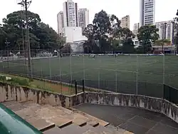 Aclimação Park features the Jack Marin Municipal Stadium, which is run by the Municipal Department of Sports and Leisure. It was founded in 1927 and became the first municipal soccer school in Brazil and Latin America. It has a soccer pitch measuring 60 meters wide by 90 meters long, two multi-sports courts, changing rooms, a medical and administrative department, a multidisciplinary care room and a cafeteria. Currently, it hosts an indoor soccer school for children and young people, and caters for grassroots clubs in the evenings and at weekends. The place was named after Jack Marin by Municipal Decree No. 18,721 on March 11, 1983.[11][12][2]