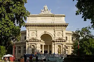 A typical building of the age of king Umberto I, it has a circular plan and shows a pronaos with aediculas. Decorations with marine subject are inserted between the sculptures into the aediculas; between the caryatids are placed some medallions. The cylindrical body of the building is subdivided by lesenes and pilasters.
