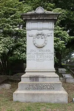 Atkinson died about midnight on the evening of December 11, 1916, at the Hotel Richmond.[1][5] She is buried at Hollywood Cemetery in Richmond.[1][5]