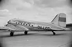 OH-LCC, the aircraft involved in the accident, seen in 1947 in a previous livery. | |